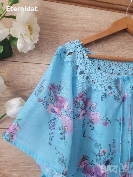 Нова синя блуза с цветя и дантела → Обява 51863217