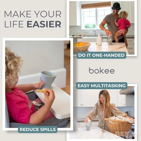 🍼С Ingenuity Bokee можете да приготвяте шишета с едната си ръка, докато държите бебето си в другата.