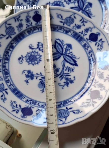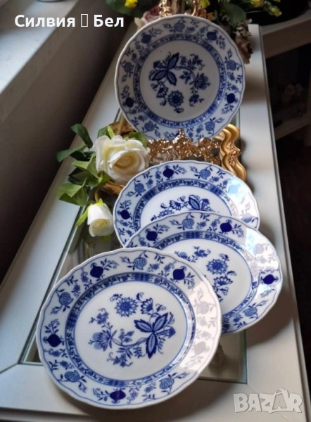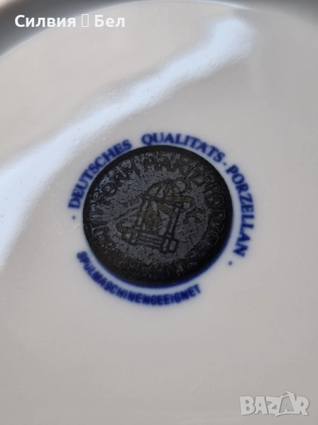 Meissen. Този вечен модел се отличава с деликатни и сложни сини орнаменти на снежнобял фон, които излъчват спокойствие и изтънченост. Всяка чиния носи на гърба си маркировката на Tirschenreuth Porzellan, гарантирайки нейната автентичност и произход. Този комплект е идеален за колекционери или за всеки, който желае да добави към своя дом предмет с история и неизменна красота, която не избледнява с времето. Цена 8️⃣0️⃣лв.40,90 €•✽✧✽•°”˜🦋”°•✽✧✽•°”˜🦋”°•✽✧✽•°”˜🦋”°•✽✧✽•°”🦋˜”°•✽✧✽•