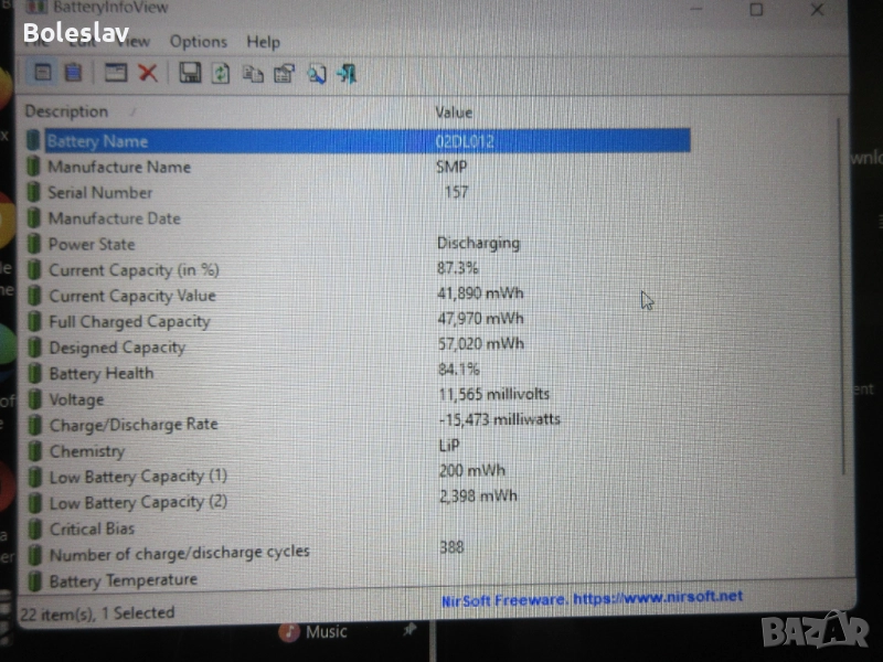 Батерия : оригинална батерия на 84% здраве, гарантира над 3h автономна работа