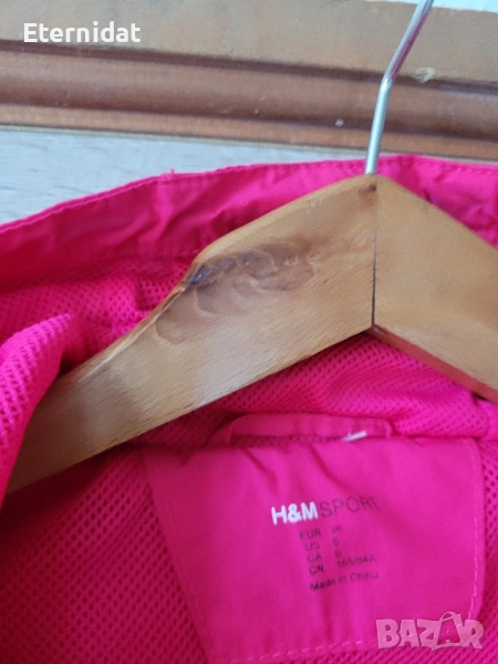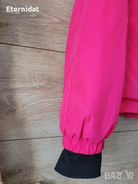 Розово спортно яке с качулка H&M. Водо и ветро непромокаема материя, допълнителна ластици при китките с отвор за палеца. Пристягащи връзки в талията, дишаща подплата. Пристягащи връзки и при качулката. Вътрешен джоб. Като ново!! Размер S Гръдна до 90см Цена 65лв