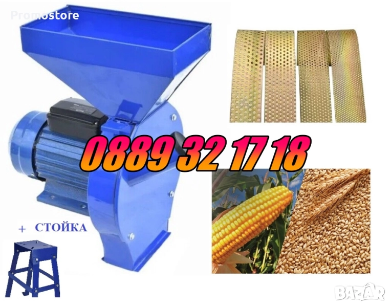 Тип 2: Руска комбинирана монофазна фуражомелка със стойка/ ярмомелка, 3.8 kW - 240 кг. на час - 4 бр. сита - ЦЕНА 110 евро