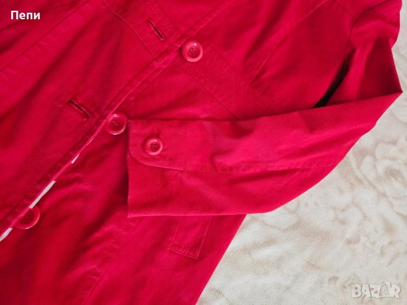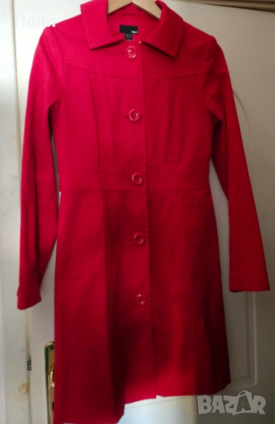 Шлифер с много елегантна кройка от памучен рипс и ефектна цветна подплата. Дължина 92 см, шир.при гърдите 46 см, шир.ханш 51 см, дълж.ръкав 62 см.
