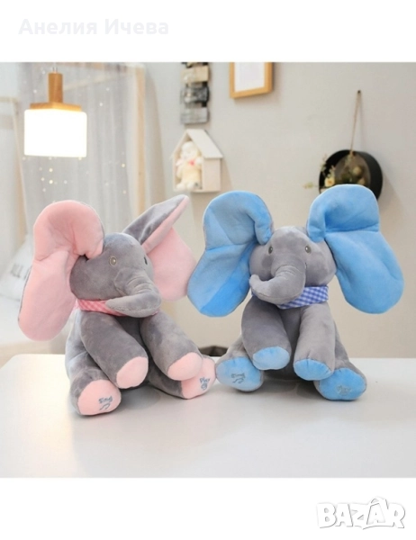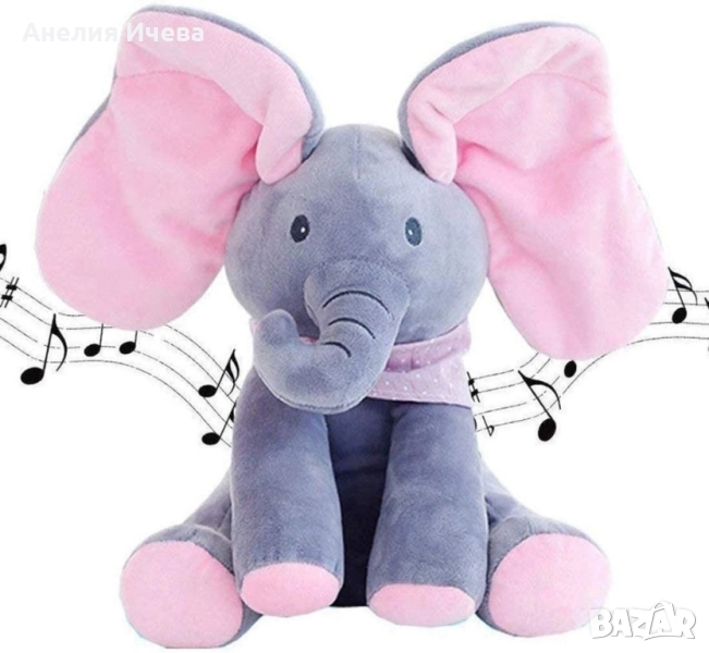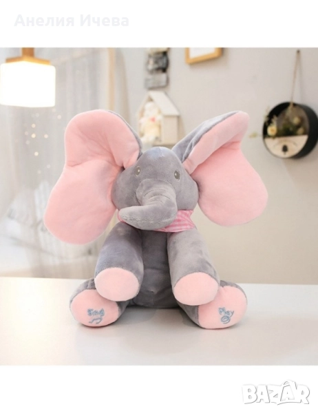 Плюшена детска играчка слон с музикален бутон → Обява 51863697