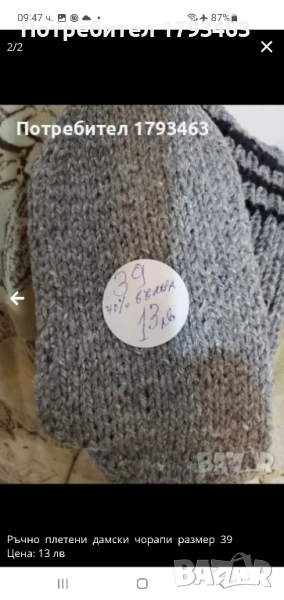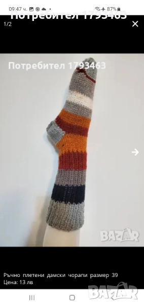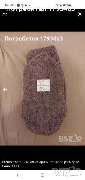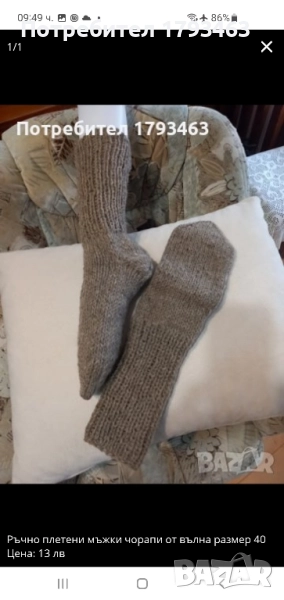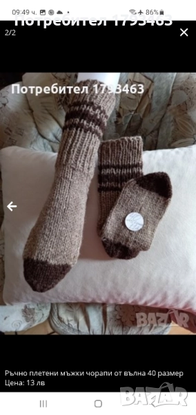 Ръчно плетени мъжки чорапи от вълна, размер 46 → Обява 51863860