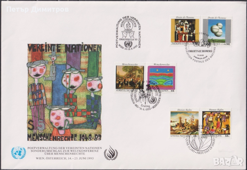 Първодневен плик Организация по правата на човекa Живопис 1993 от ООН.