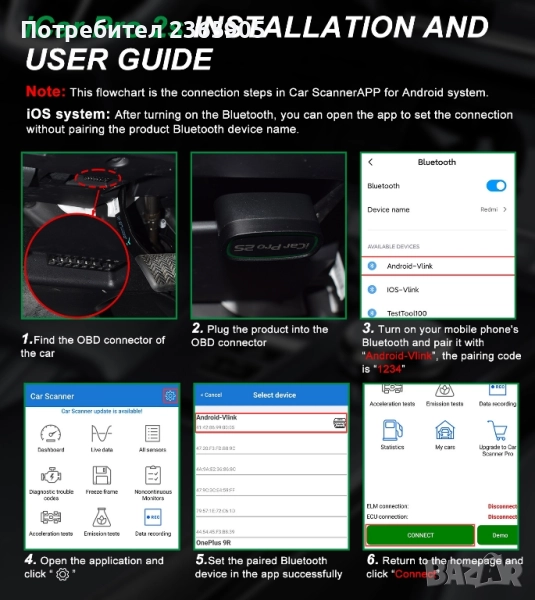 Практически iCar Pro 2S поддържа всички съществуващи програми. Има и указания за употреба в кутията. При желание мога да окажа помощ за свързване, софтуер и съвети за по- правилната работа със скенера.
