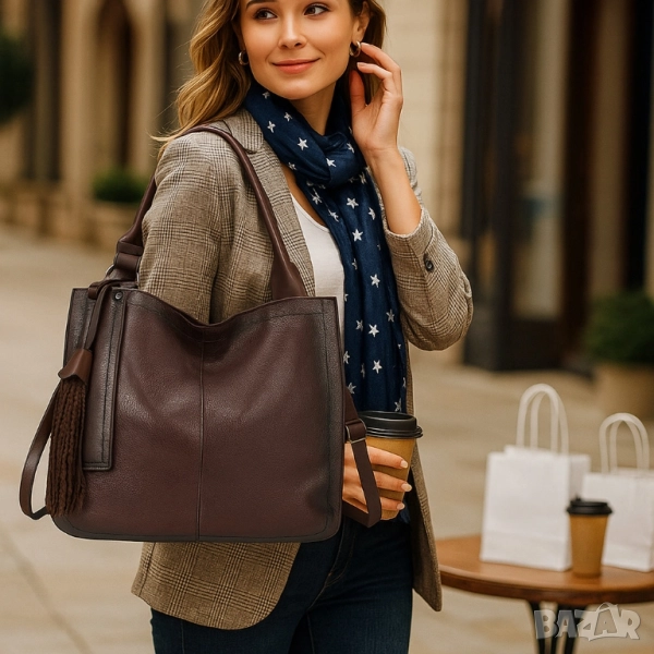 Стилна дамска чанта с голям обем и организация