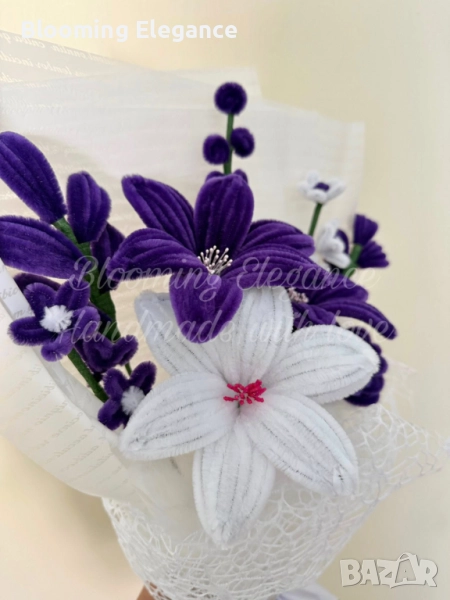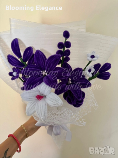 Изработен ръчно от мека плюшена тел, той носи усещане за лукс и романтика, а най-хубавото е, че остава свеж завинаги.