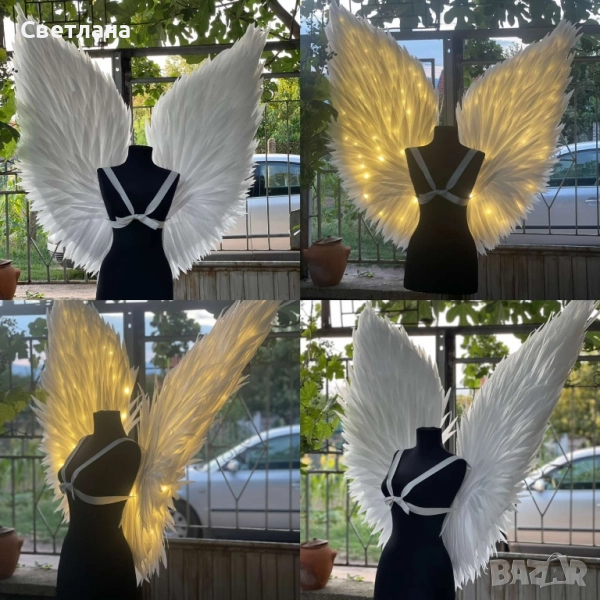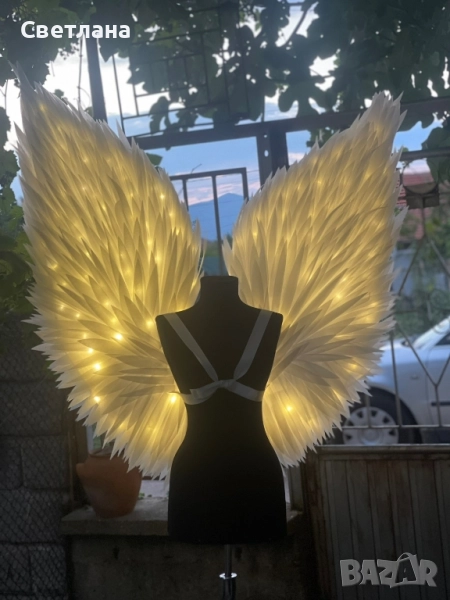 Впечатляващо красиви ангелски крила за фотосесии или шоу програми.. Изработват се по поръчка. С ЛЕД лампички - 340 лв, без лампички - 300 лв.