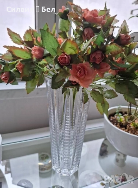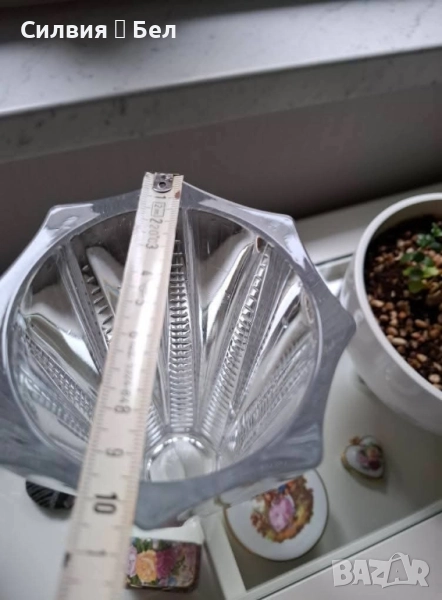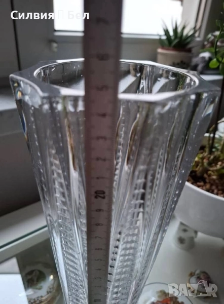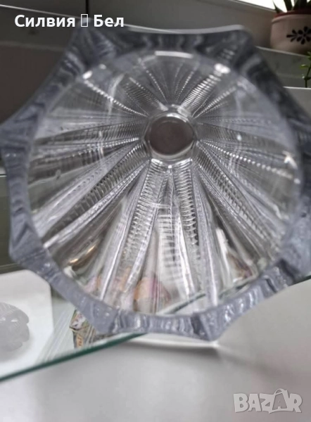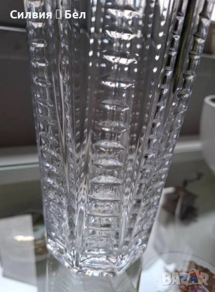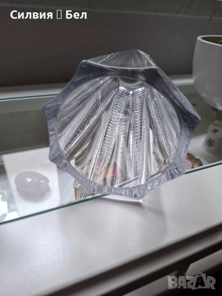 Елегантна, ретро кристална ваза с височина 24,5 см. Осемстенна форма – Вазата има осмоъгълно сечение, което допълнително подчертава сложността на обработката. Интересна геометрична шлифовка с релефни вертикални линии и декоративни детайли, които придават на кристала елегантен и луксозен вид. Цена 3️⃣0️⃣лв. 15,33 €ೋ🌷 ೋ🌷