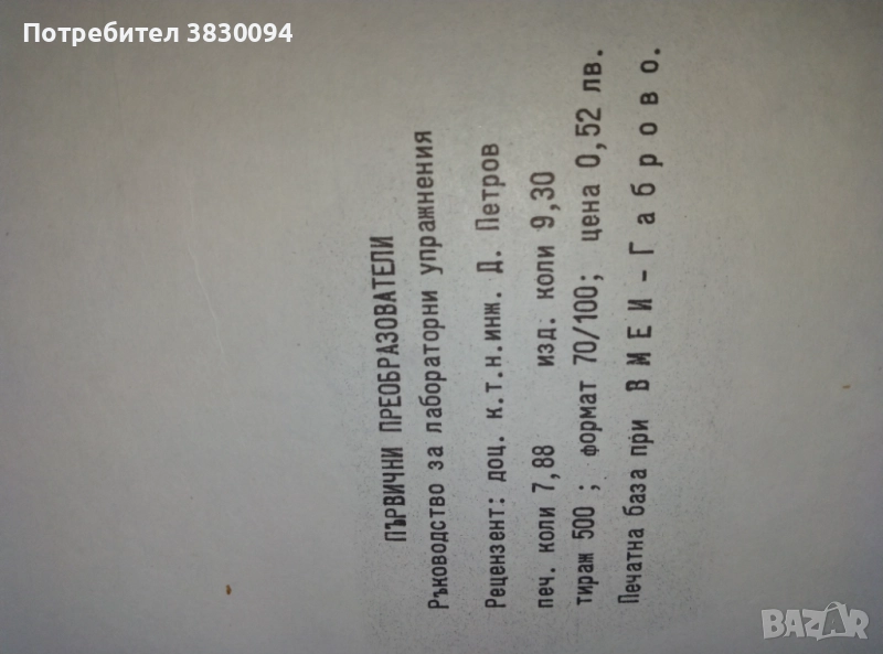 Ръководство за лабораторни упражнения Габрово 1984г тираж -500стр126 Изд ВМЕИ Габрово
