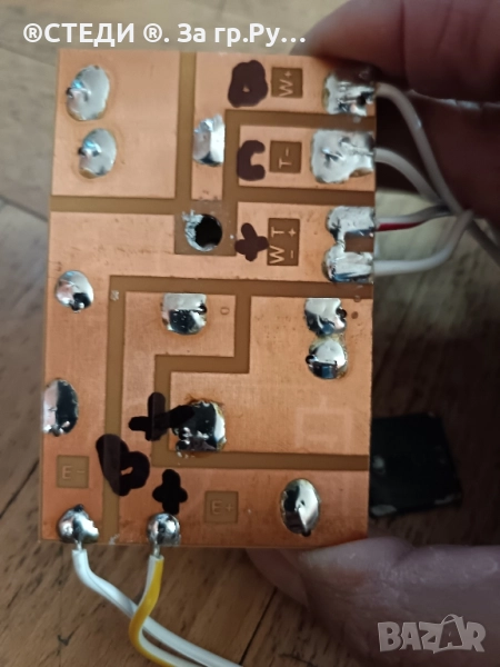Кросоувър за високоговорител, вероятно от тонколона Canton Karat M 40. Виждат се различни електронни компоненти, които обикновено се намират в кросоувърите: Биполярен кондензатор: С надпис "BIPOLAR G-F 2379". Използва се за филтриране на честоти. Резистори: Бели керамични резистори с надписи "1.2 Ω 5W 5%" и "4.7 Ω 5W 5%", които регулират мощността и импеданса. Бобини (индуктори): Черни бобини с намотки, използвани за филтриране на честоти в кросоувъра. Платка: Кафява платка, на която са монтирани компонентите, с различни числа и надписи, като "6094", "1611", "2545" и "Plus F". За гр Русе лично предаване за останалите населени места с еконт.