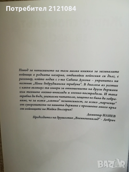 Повод за написването на тази малка книжка за загиналите войници в родната казарма, отбивайки военния си дълг. Състояние: Отлично