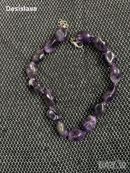 Колиетата са чисто нови, едното е с етикет, на другото е скъсан. Червеното колие е от дърво и корал, а второто е от аметисти.
