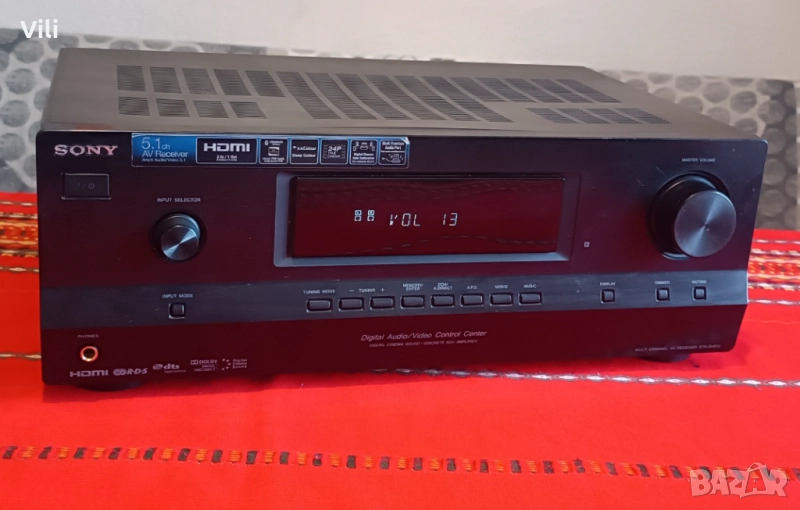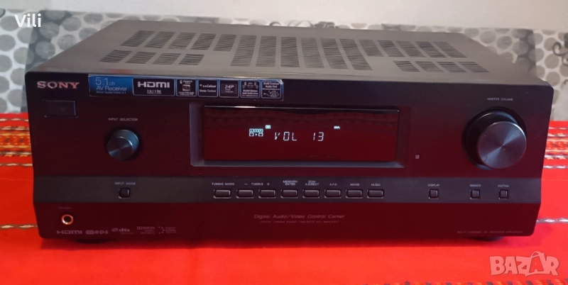 Продава се Sony STR-DH510.Надежден ресивър който поддържа Dolby Digital,DTS и Dolby Pro Logic II,разполага с 3 HDMI входа и 1 изход, както и други свързващи възможности като компонентно видео и цифрови аудио входове.Подходящ за домашно кино–обгръщащ 5.1 звук за потапящо изживяване.Отличен за музика–топъл,чист и балансиран звук.