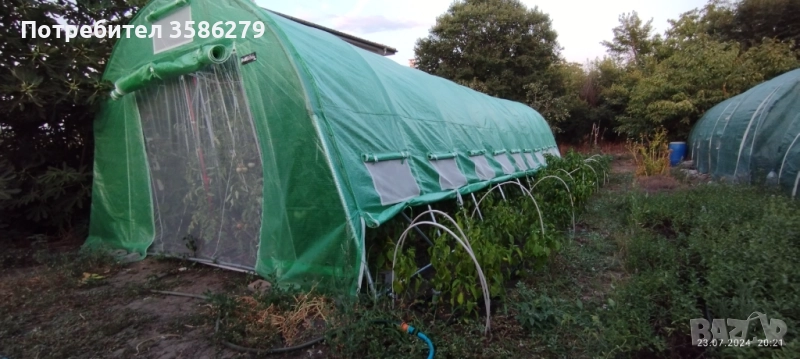 Продавам 3 оранжерии-10/4/2,3м, 8/3/2м, 5/3/2м. Циповете на малката оранжерия са за смяна. В цените включвам капковото на оранжериите-140м. Продавам и таймер за поливане, басейн за поливане с обем 9 кубика с покривало и други дреболии. Вижте другите ми обяви. Цени договарям тук или по телефон. Цена за трите оранжерии+таймера за поливане+още 120м капково твърд маркуч фи 16мм+2 капана за тута абсолюта+соларни вентилатори 2 бр. + басейна със зимно покривало+70м маркучи 3/4+ акумулаторна машина за пръскане 18л.+доста резервни част за капково и бързи връзки за маркучи+мрежите на двете оранжерии+още 100кв.м. мрежи различни размери+ много тарелки и кофички за разсади+различни видове лепящи листове за борба с вредители. Добавям и система за прецизно поливане и торовнасяне състояща се от 3/4 инжектор на Вентури,електронен водомер и уред за измерване на влажност в почвата и PH. Готова,разработена и изпитана,не изискваща ежедневно присъствие,автономна система,подходяща за виладжии..