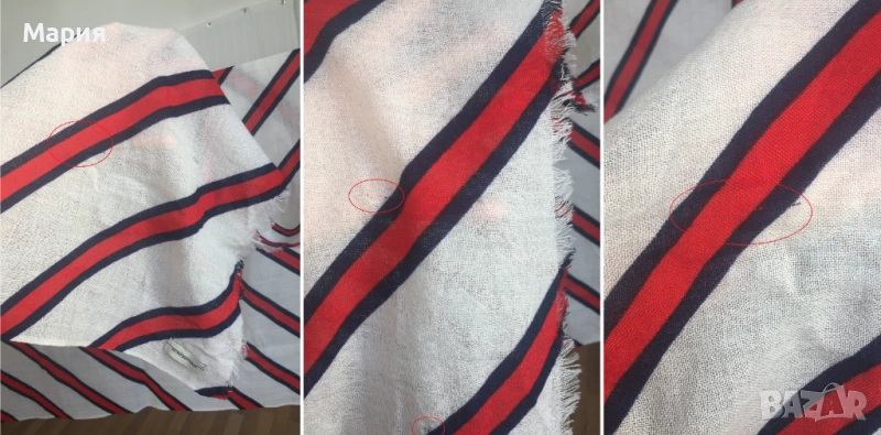 Има скрити забалежки - друпнати финни влакна в плата, но без да съсипват формата. Показани са прецизно на фотоколажите, но не се забелязват при носене и изглеждат незначително.