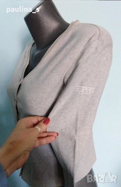 2️⃣. Колаж / / XL / 3XL - "Esprit". Цената е крайна, без пазарлъци 29,99лв / 15 евро. Памучна брандова жилетка от плътно и еластично трико, 100% органичен памук, хипоалергична дреха, подходяща за капризна кожа от алергии, дерматити, диабетна полиневропатия. Може да се носи и като горнище за спорт и туризъм, може и като жилетка. Моделът е обран, бието е декорирано с еластичен сатен. Без дефекти, елегантна и практична. Моделът е обран и леко втален. Без дефекти, като нова.