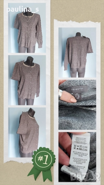1️⃣. Колаж / XL / 3XL - "Primark". Цената е крайна, без пазарлъци 29,99лв / 15 евро. Сезонна маркова жилетка с декорации на бието и копчета като камъни, в стил Джаки Кенеди. Материята е мека и еластична вискоза и полиестер, много еластична и покрива няколко размера. Като цяло дрехата е стилна. Една бройка е, без дефекти и етикет, като нова.