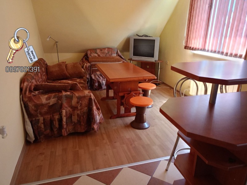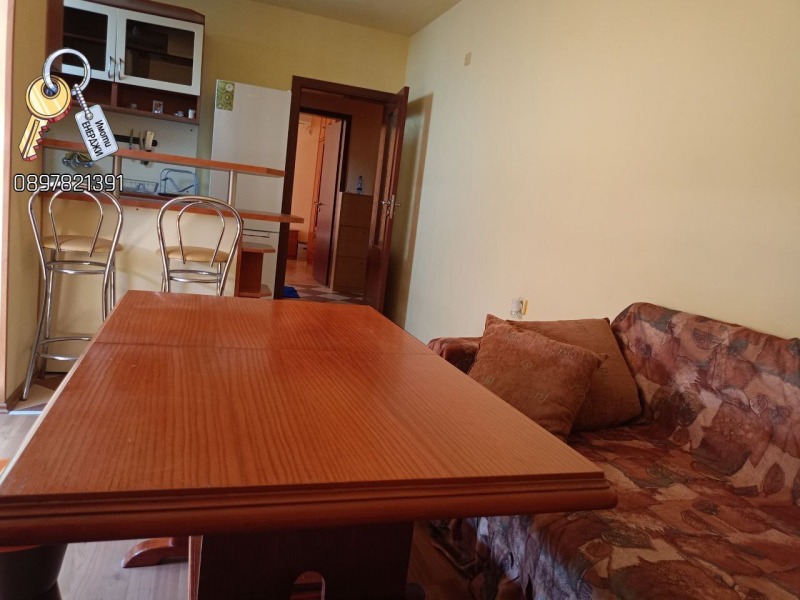 Продава се обзаведен двустаен апартамент 49,50 кв. м. и маза 6,65 кв. м. с добро местоположение. В близост има хранителни магазини, детска градина, детска площадка, спирка на градски транспорт. Разпределение: Спалня, дневна с кухня, баня с тоалетна и коридор. Жилището е напълно обзаведено с всичко необходимо за живеене: готварска печка, абсорбатор, хладилник,