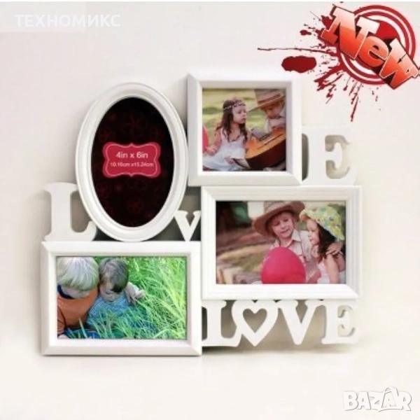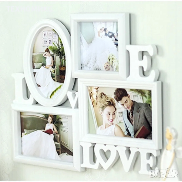 Озарете своя дом с фоторамка-колаж "Любов" в бяло, вмещаваща 4 снимки!