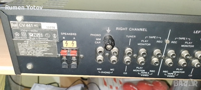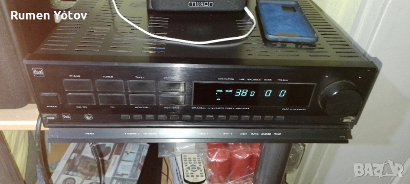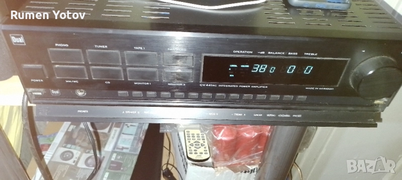 Dual CV 441 RC е висококачествен интегриран усилвател от висок клас (High-End), произведен от германската компания Dual между 1987 и 1988 г.. Той е смятан за последния и най-добър усилвател "Произведен в Германия" от марката и е известен със своята здрава конструкция и отлично качество на звука. Основни характеристики: Конструкция "Dual-mono": Усилвателят е проектиран с отделни захранващи блокове и трансформатори за всеки канал, което е характерно за аудиофилско оборудване и допринася за отличното разделяне на каналите и качеството на звука. Висока мощност: Осигурява 2 x 145 вата постоянна мощност при 8 ома и 2 x 200 вата при 4 ома. Ниски изкривявания: Има много нисък коефициент на хармонични изкривявания от 0,003% при номинална мощност. Широк честотен диапазон: Честотната му характеристика е от 5 до 100 000 Hz. Входове: Разполага с входове за Phono MM и MC (грамофон с подвижен магнит и подвижна намотка), тунер, CD плейър и два входа за магнетофон/DAT/видео. Качествена изработка: Отличава се с изцяло метален преден панел и цялостна конструкция от високяокачествени материали. Усилвателят Dual CV 441 RC е ценен от ентусиастите заради своята динамика, неутрално възпроизвеждане на звука и надеждност, като много бройки все още функционират безупречно днес. Предпочитам тест на място,без куриери.Мога да го доставя лично!