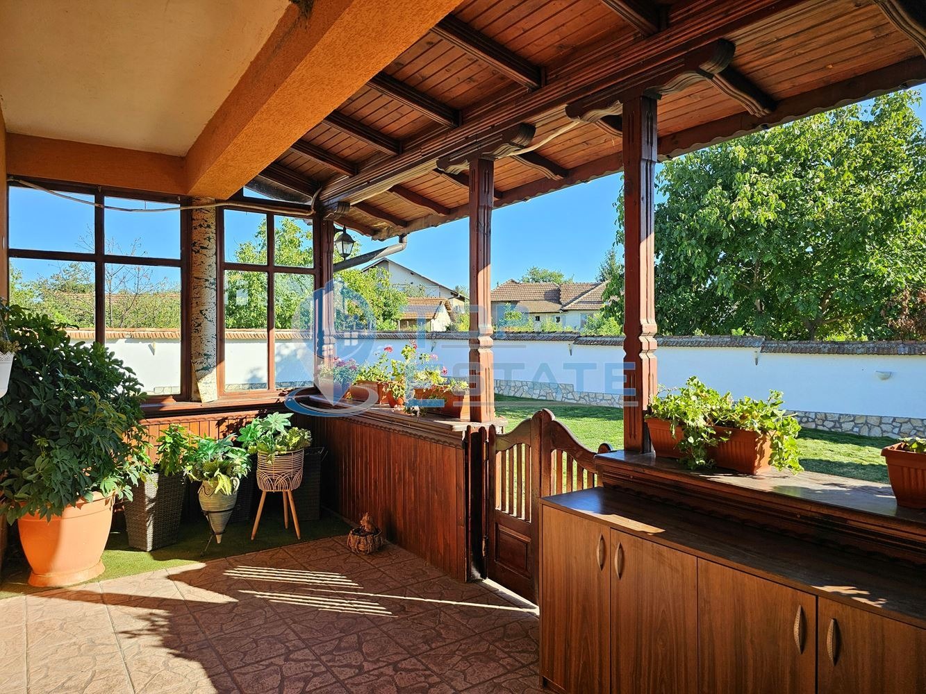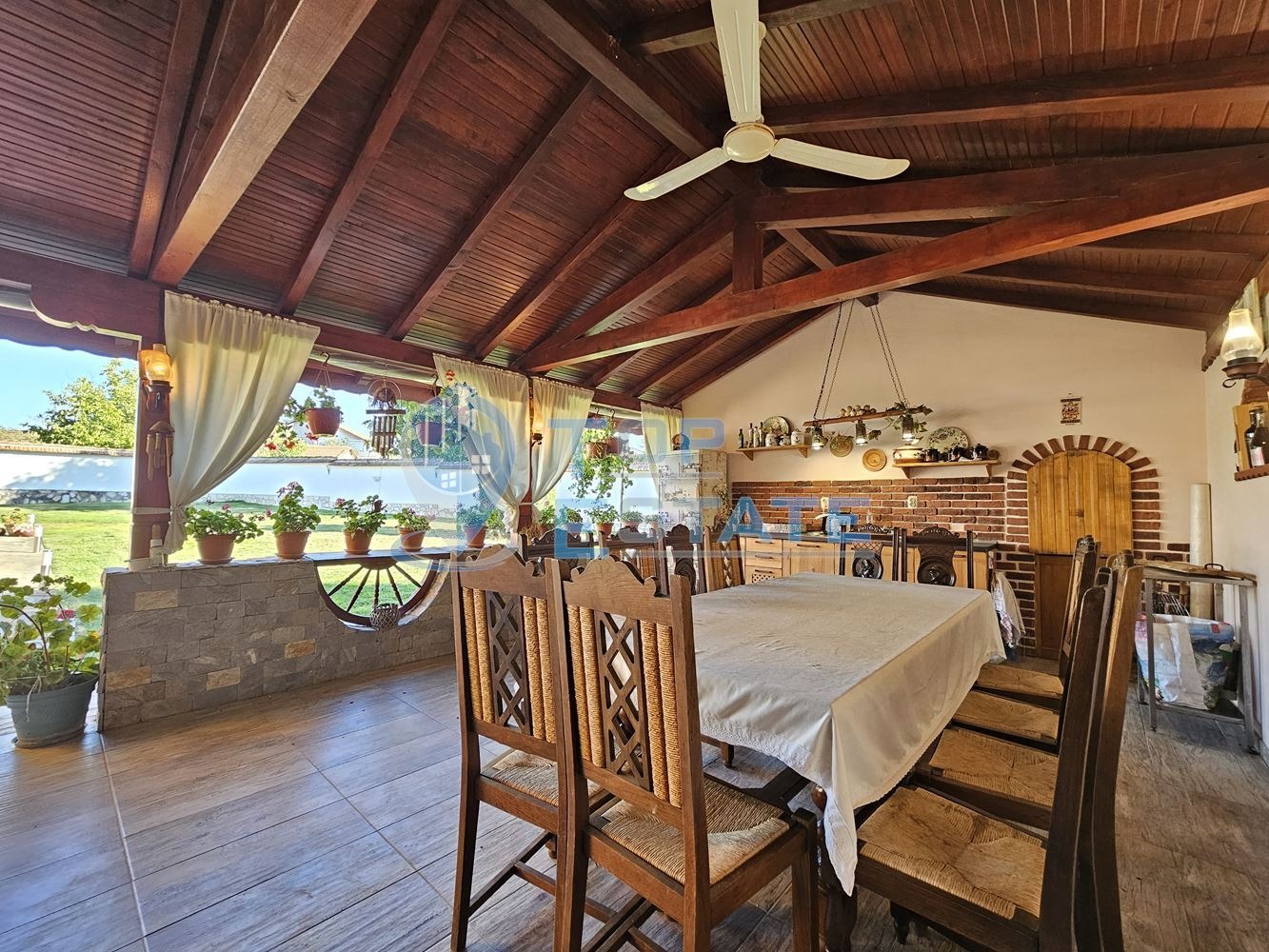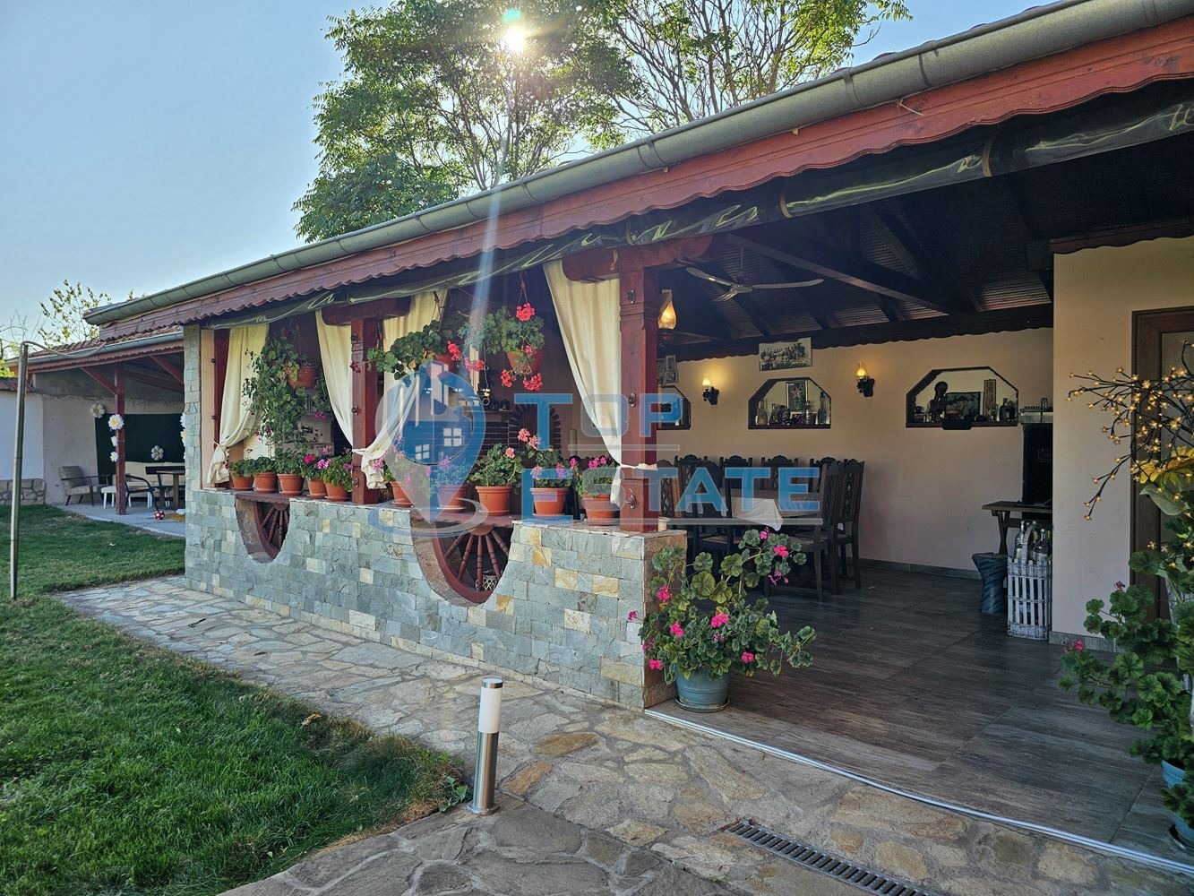 Видео на имота! Топ Естейт Недвижими имоти Ви предлага обзаведена къща с три спални, барбекю, поддържан двор и гараж в село Поликраище, област Велико Търново. Къщата е с разгъната застроена площ от 240 кв.м, разпределени между приземен и жилищен етаж, като конструкцията и е масивна със стоманобетонни плочи и колони. Жилищният етаж се състои от три спални, просторна всекидневна с кухненска част, санитарен възел, тераса, коридор и остъклено антре, като вътрешно бетонно стълбище води към приземния етаж в който са разположени механа с аспирация, кухня, всекидневна, гардеробна, складово помещение, санитарен възел и гараж с топла връзка към останалата част на къщата. Подпокривното пространство, което е достъпно чрез вътрешното стълбище е с голяма височина, позволяваща обособяване на допълнителна жилищна площ. В непосредствена близост е разположен летен кът - барбекю, разполагащ със собствен кухненски кът, пещ, санитарен възел и просторно място за забавления. Целия имот е изключително добре поддържан и модернизиран, като се продава с цялото налично обзавеждане и оборудване. Част от подобренията са: поставена е външна и вътрешна изолация, PVC дограма, покрива е обновен, нови интериорни и външни врати, подовите настилки са ламиниран паркет и теракота, стените са фино шпакловани и боядисани, както и много други подобрения, а отоплението и охлаждането са решени чрез климатици висок клас. Парцелът е с площ от 964 кв.м, озеленен и разполага с поливна система, джакузи, две автоматични портални врати, паркинг с настилка от каменни плочи, външна чешма, градинско осветление. Номер на оферта 3302. We speak English and German.