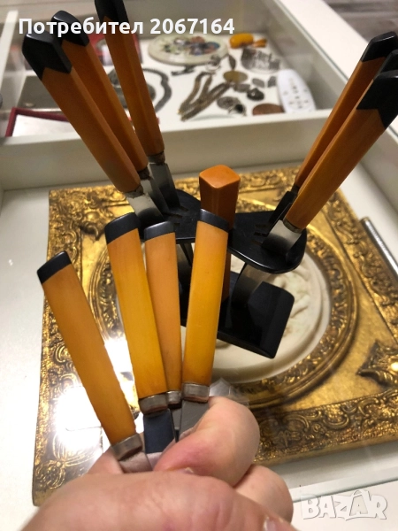 Ножчета с дръжки от кехлибар бакелит → Обява 51870844