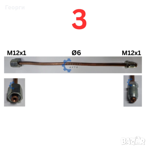 3. Спирачна тръба медна Ф6 2х М12х1 накрайници - мъжки, женски