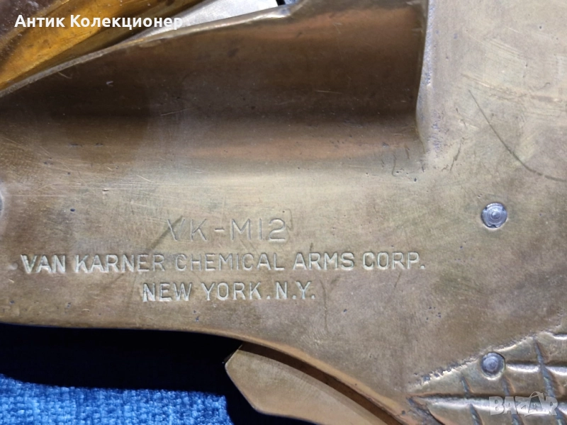 Голям и масивен Американски сигнален пистолет Van Karner M12, маркиран „VK-M12 — Van Karner Chemical Arms Corp. New York N.Y.“, калибър 37 мм.