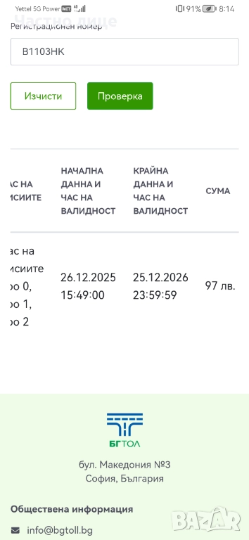 Платени всички пътни такси до 26.09.2026г (гражданска, годишен преглед, годишна винетка до 25.12.2026г) Задължително прехвърляне.