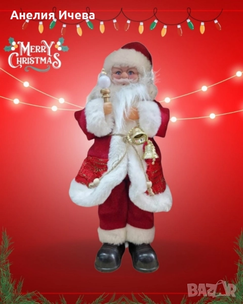 Декоративен Дядо Коледа със светеща факла и камбанки, на батерии. Височина: 40см. ??️Заведете Коледната магия във вашия дом с нашия Декоративен Дядо Коледа със светеща факла и камбанки в ръка! Този чудесен аксесоар ще внесе топлина и атмосфера на празничните дни, правейки вашия дом още по-удивителен и приветлив.