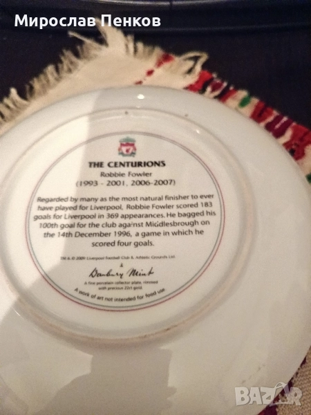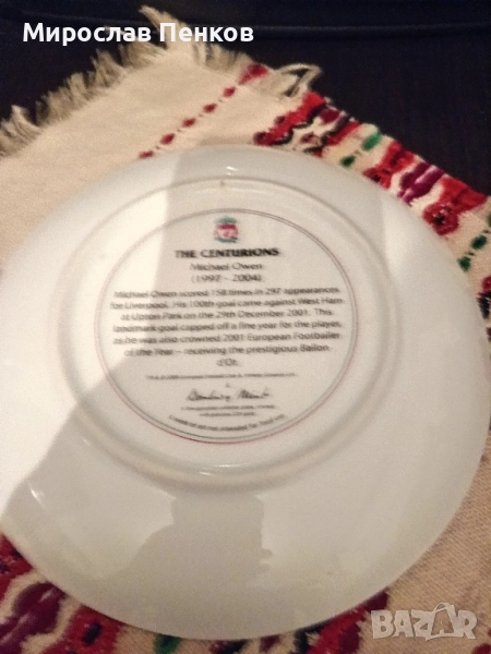 Порцеланови чинии за стена на Ливърпул с легендите Майкъл Оуен и Роби Фаулър.Цена за брой.
