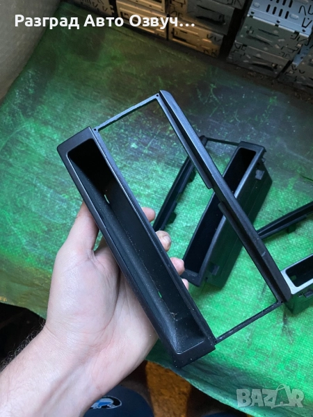Преходна рамка за табло на Ford Focus MK1 за смяна на оригиналното му радио към стандартен единичен дин размер за радио 1DIN. Доколкото разбрах тези преходни рамки ставали за много модели автомобили на Ford:
