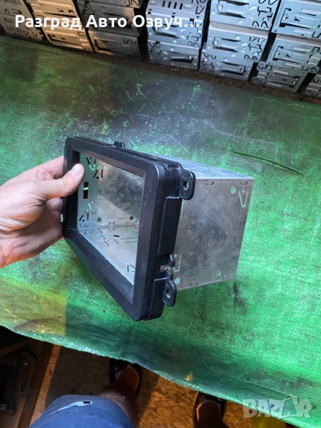 Преходна рамка с монтажто желязо шина за VW Golf 5, Sharan, Touran и става за още доста други модели. За смяна на радиото от оригинално радио към 2DIN двоен дин стандартен размер. Монтажа е лесен, от двете страни на шината има по две дупки, шината се стяга към новото радио с общо 4 болта и след това го монтирате на колата.