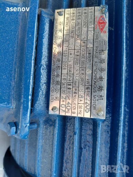 продавам елдвигател с мощност 4 кв, диаметър на ос-28 мм- , 1440 оборота в минута, 40 кг