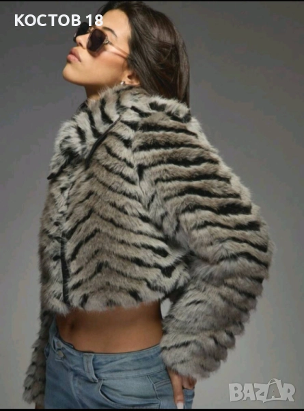 Стилно дамско яке, изработено от висококачествена еко кожа, съчетана със сив и черен пух. Моделът е с два предни джоба с цип, шушлекова подплата и пресовна вата за топлина и комфорт. Материя: 100% полиестер.