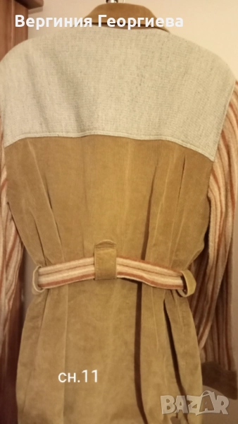 Сн.10 и 11 - Уникално палто тип "Пачуърк" - комбинация на памучно кадифе, вълнен плат ленено - памучен плат, с подплата. Шито по поръчка. Р-р L, XL - гр.об. - 102 см, дължина - 74 см.