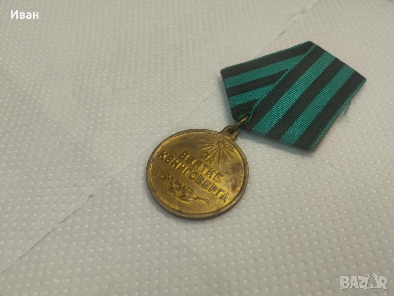 Описание: Медалът е учреден на 9 юни 1945 г. и е предназначен за военнослужещи, участвали в превземането на Кьонигсберг по време на Втората световна война. Материал и размери: Изработен е от месинг, с диаметър 32 мм. Надпис: На лицевата страна е изписано „ЗА ВЗЯТИЕ КЕНИГСБЕРГА“ (За превземането на Кьонигсберг).