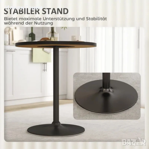 Кръгла трапезна маса HOMCOM, дъбов вид, компактен дизайн, за 2-4 души, дъб - 180.00лв.