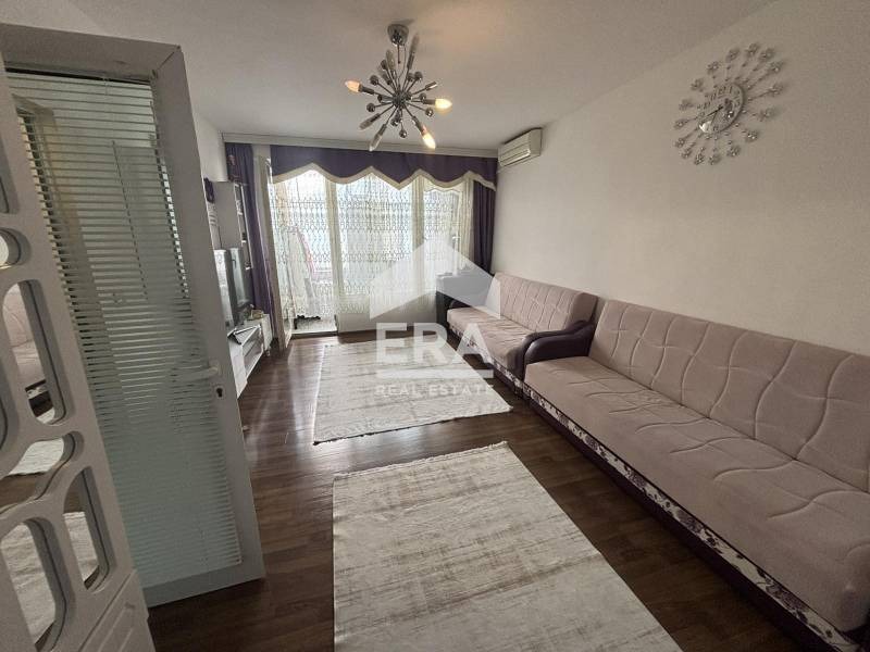 ЕРА 1300 предлага за продажба двустаен апартамент с площ 64,05 кв.м., разположен на четвърти жилищен етаж. Жилището е със следното разпределение: хол с излаз на закрита тераса, кухня с усвоена тераса, спалня, баня с тоалетна, Г - образен коридор. Имотът е с подменена дограма, нови входна и интериорни врати, ново подово покритие, вътрешна изолация. Предлага се с наличното обзавеждане и оборудване. Отоплението е решено посредством климатици и конвектор. Към апартамента принадлежи избено помещение с площ 3,76 кв.м.