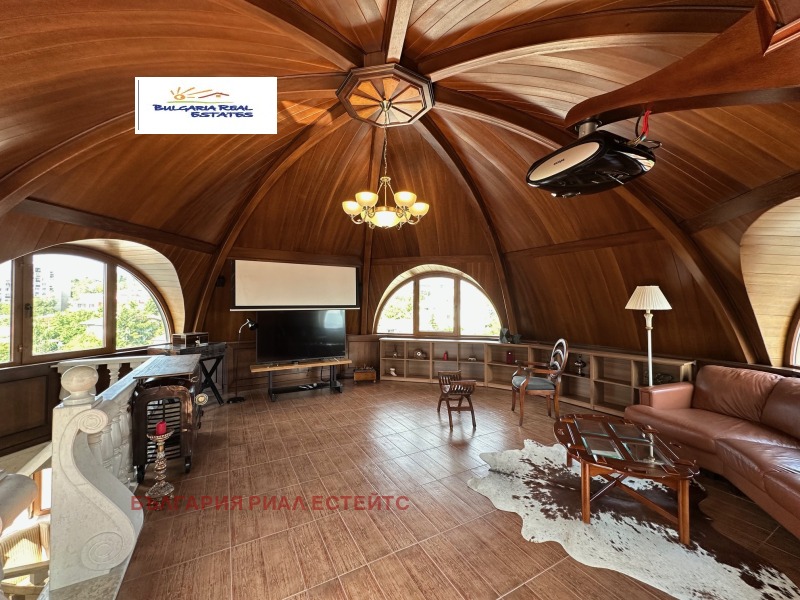 трапезарна част с дизайнерско обзавеждане, кухненски бокс, библиотека и винарна;