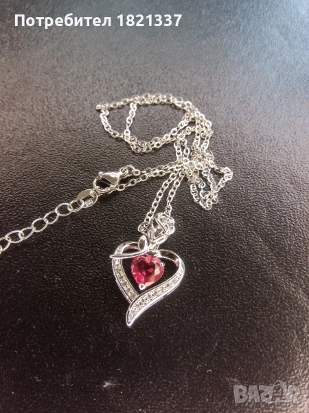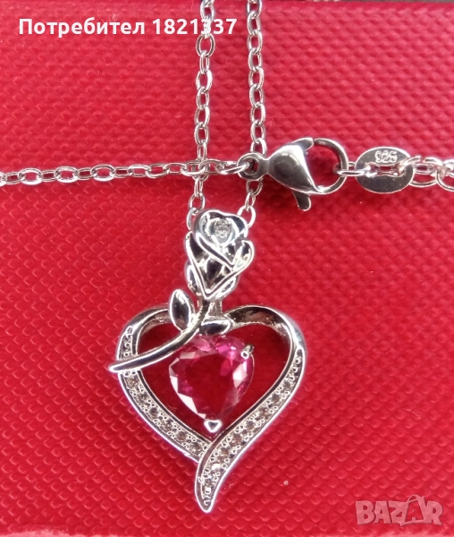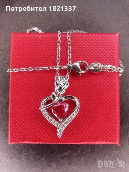 Колие с кристали. Форма на сърце с роза. С подаръчна кутийка.