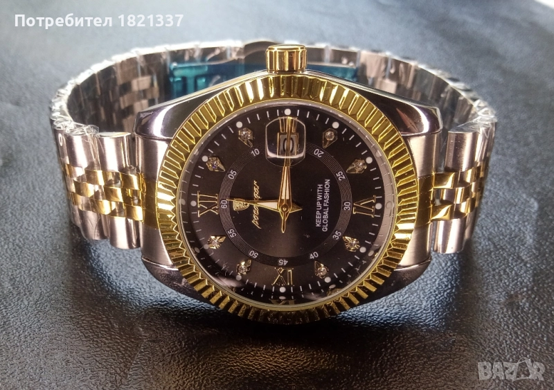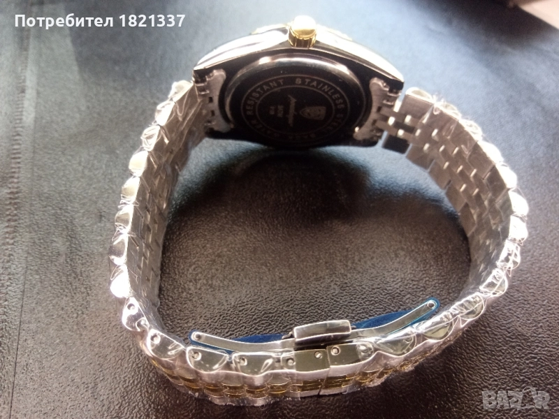 Мъжки часовник - кварцов, функция календар, водоустойчив, светещи стрелки, сгъваема закопчалка.