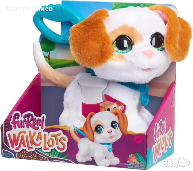 Колко е забавно на разходка с домашен любимец! Това сладко куче с каишка за разходка радостно върти опашка и издава различни звуци. Играй с него у дома, а след това го изведи на разходка. Домашните любимци FurReal Walkalots имат свързани каишки, с които можеш да разхождаш едновременно няколко животни.