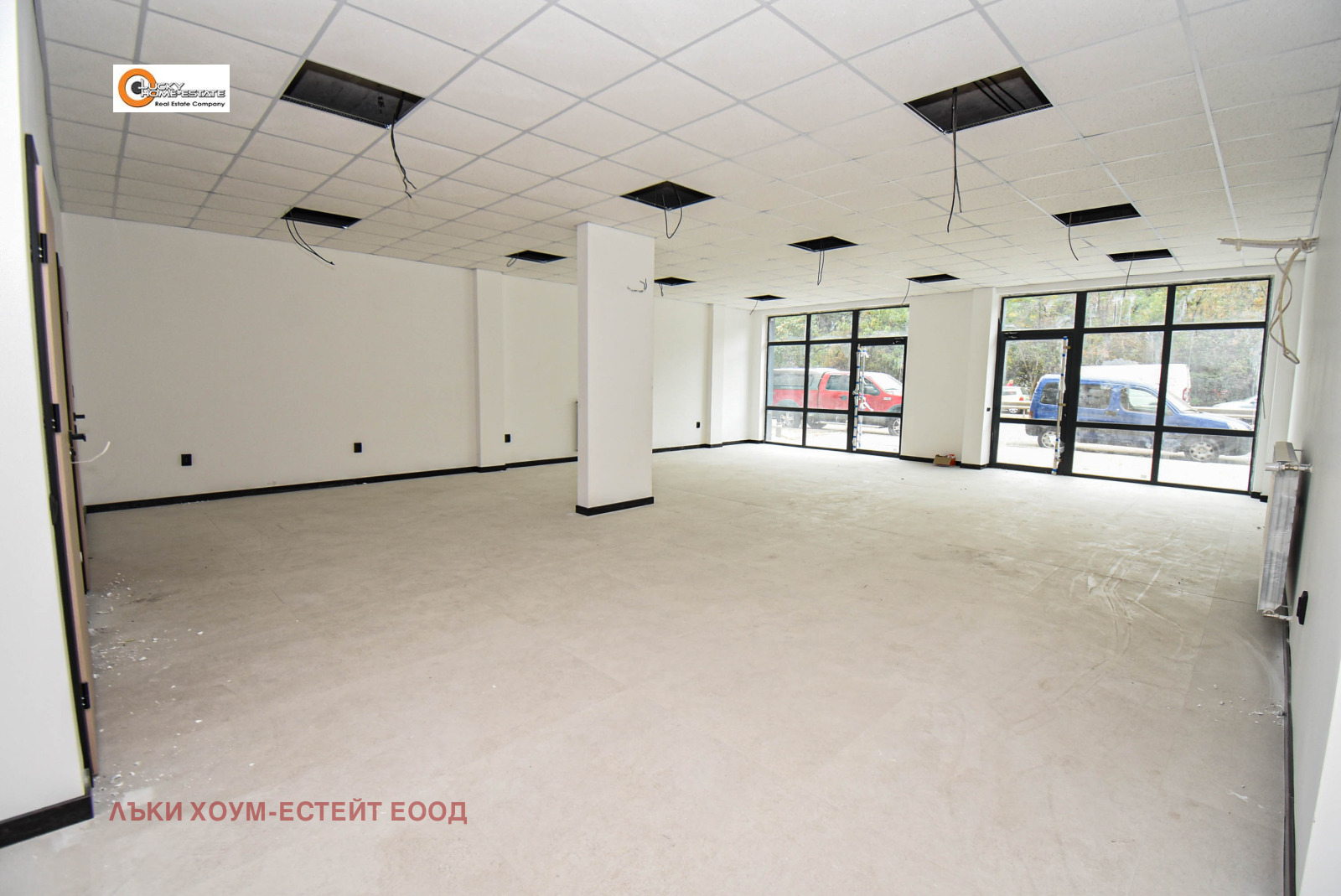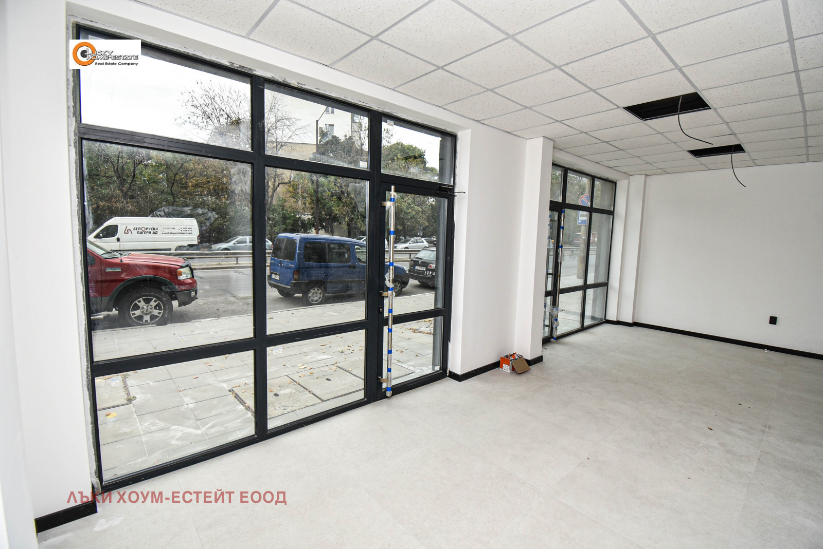 Лъки Хоум-Естейт предлага под наем магазин на партер с лице на ул.Васил Кънчев, в близост до ул.Резбарска. Статут на магазин. Застроена площ от 118кв.м. Разпределение: едно голямо помещение (100кв.м.), склад (6кв.м.) и един санитарен възел (4кв.м.). Отопление електричество. Помещението се предлага със завършени подове и стени, оборудван санитарен възел. Възможност за паркомясто 100 евро без ДДС. Подходящо за магазин, офис, шоурум. Отдава се от юридическо лице лице и върху посочената цена се начислява ДДС. За огледи: Вероника Георгиева, тел. 0899389696.