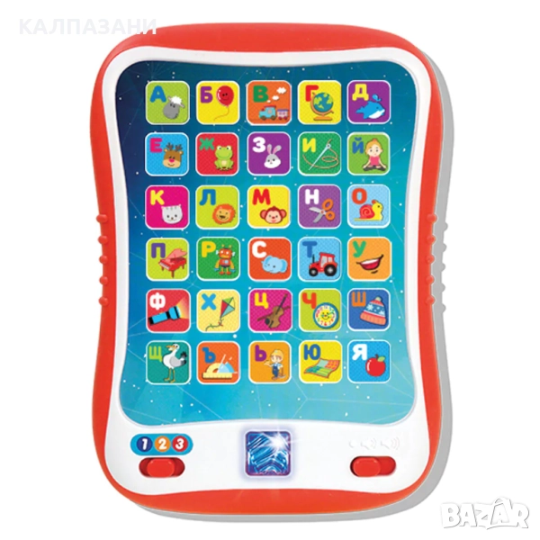 Три режима на игра за научаване на букви, думички, звуци и мелодии, многоцветни бутони, регулиране на силата на звука, светещ бутон с изображение на пръстов отпечатък. Играчката е с функция "Изпробвай ме".