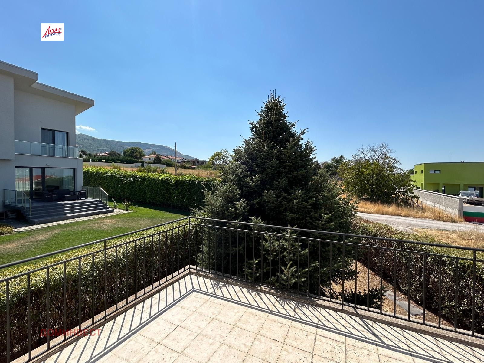 > Къщата е напълно завършена и обзаведена със стил. Гаражът е просторен, висок и свързан с къщата. Дворът е облагороден и ограден.