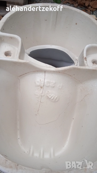 Тоалетната чиния е от моноблок и е приспособена за градинска тоалетна. Има спукване отдолу, което се вижда на сниките ,но не пречи на здравината и. Цената може да се коментира.